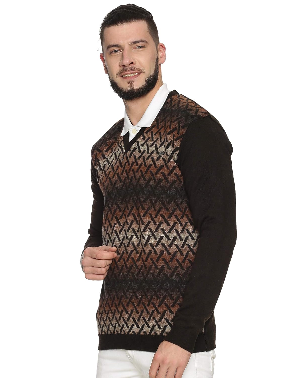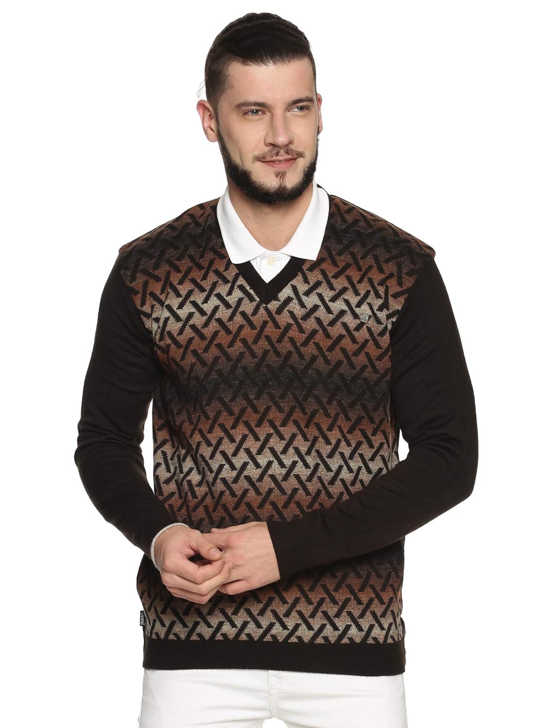Oswal Men Acrylic Regular Fit V Neck Full Sleeve Reversible Self Design Sweater Coffee Mix Size 38 Amazon In Clothing Accessories