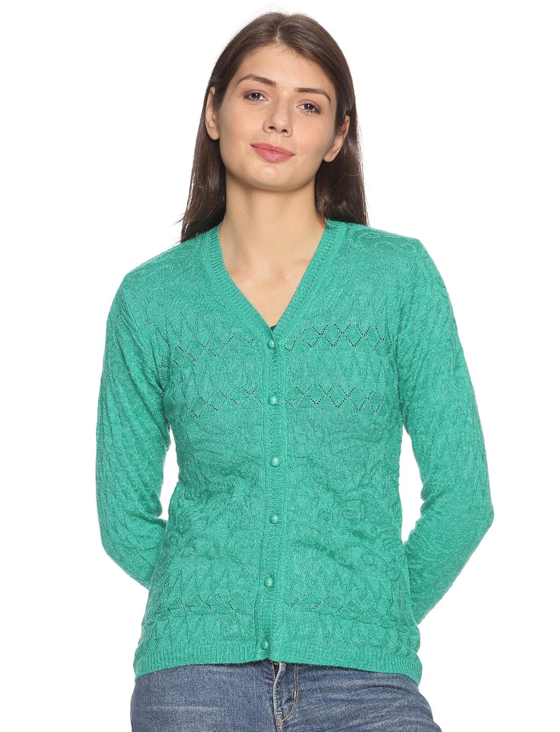Buy Oswal Women Knitted Regular Fit V Neck Full Sleeve Self Design Winter Button Down Cardigans P Green Size Free At Amazon In